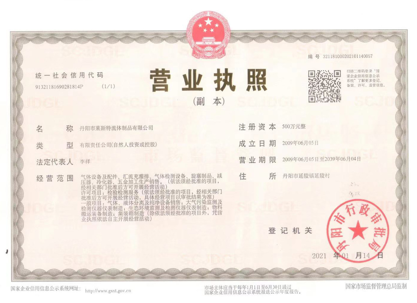 丹陽市萊斯特流體制品有限公司于2008年通過了ISO9001-2000質量管理體系認證,并申請注冊了“萊斯特”商標。2008年我廠先后被延陵鎮人民政府、鎮江市人民政府、江蘇技術監督局評為“財政貢獻優勝單位”、“重合同守信用企業”和“計量保證確認單位”。獲得“特種設備型式試驗證書(壓力管道元件)”的證書;同年,通過江蘇質量技術監督局的審查,獲得了“特種設備制造許可證(壓力管道)”的證書。